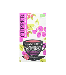 ČAJ CRANBERRY AND RASPBERRY - cvet hibiskusa, plod šipka, list koprive, koren sladića, prirodne arome, sušena jabuka, prirodna aroma maline sa drugim prirodnim aromama 1.5%, sušena brusnica 1%, sušena malina 1%
